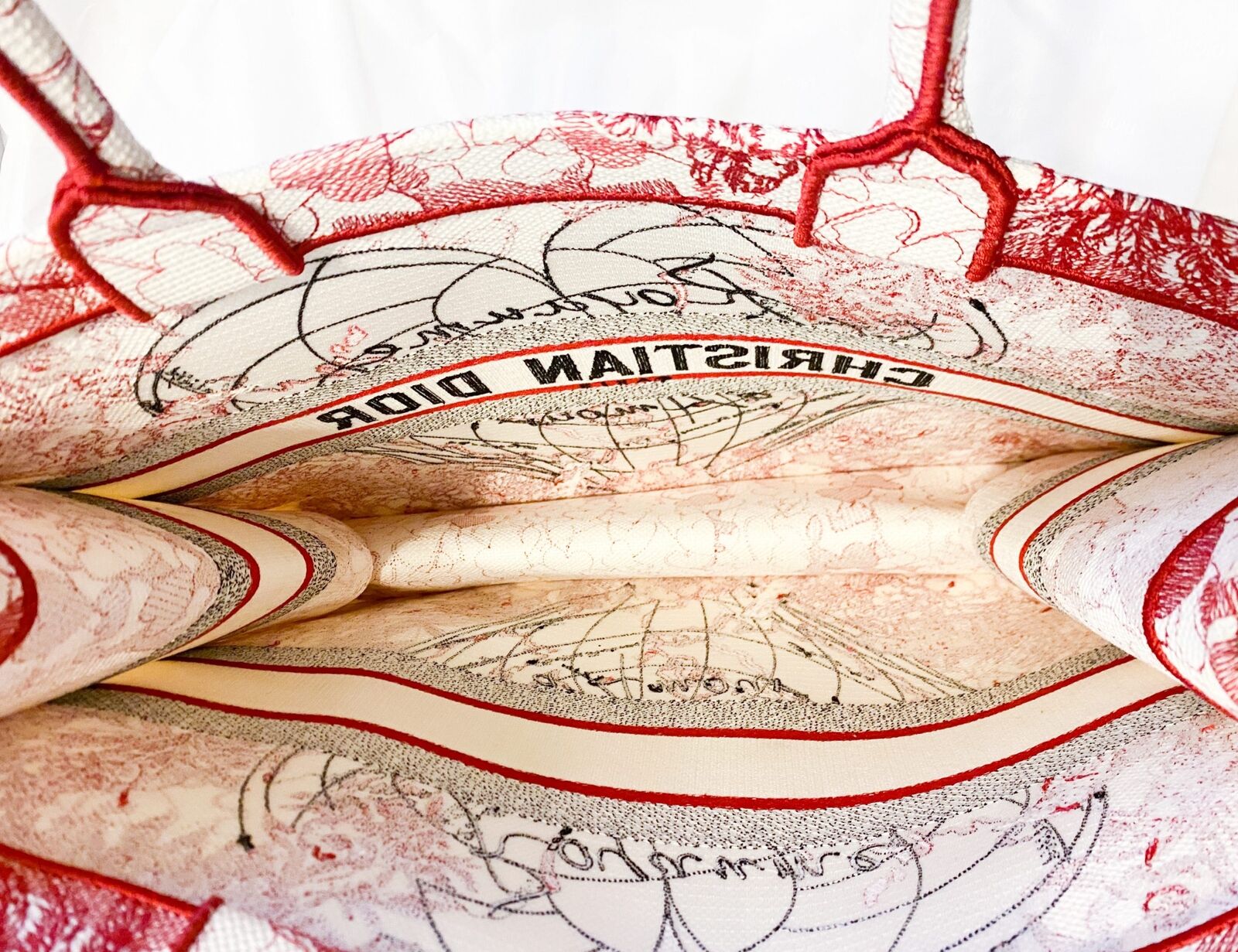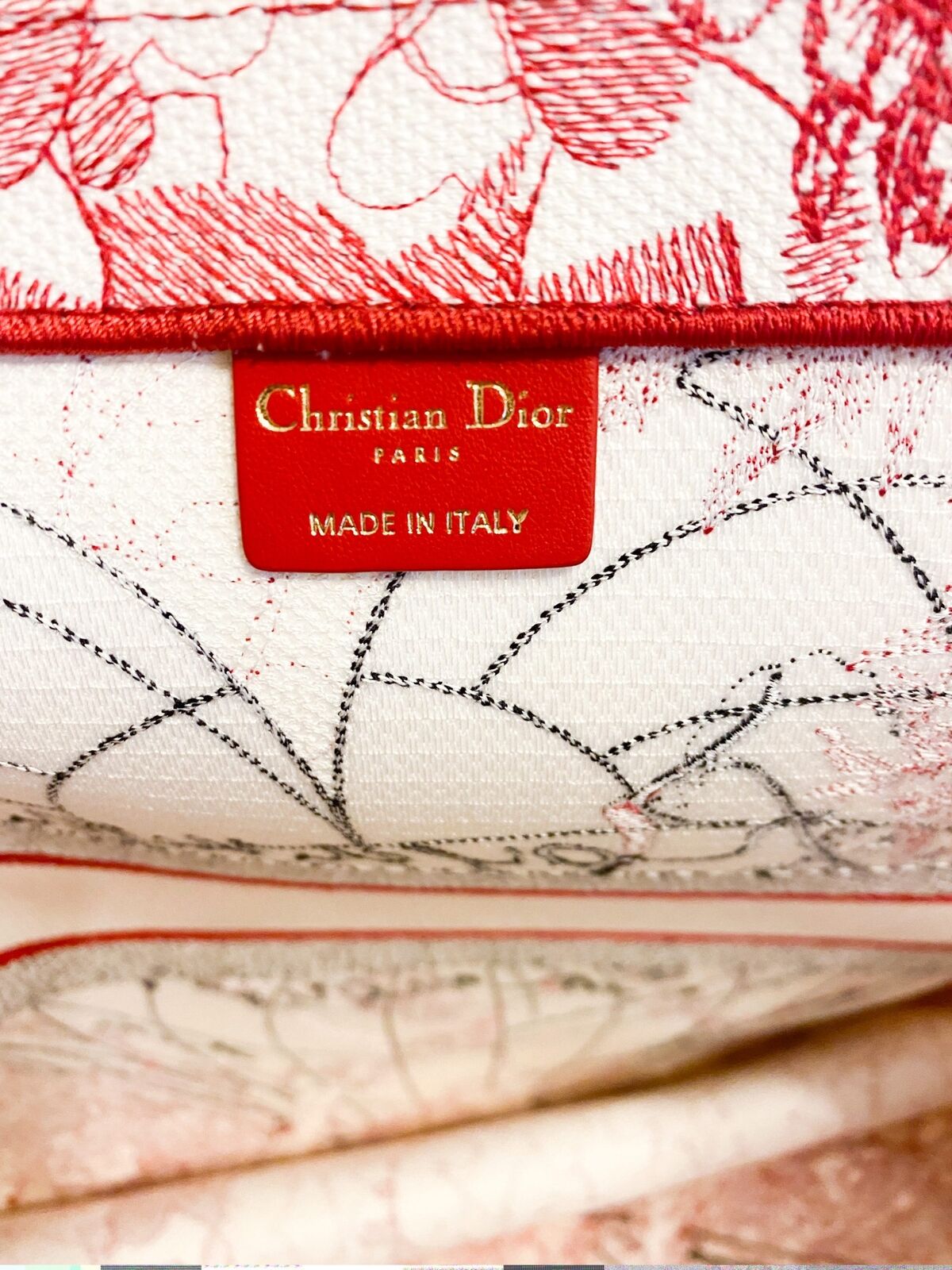 このブックトートハンドバッグは、女性のクリエイティブディレクターであるマリアグラツィアキウリ(マリアグラツィアキウリ)にインスパイアされたディオールモア限定シリーズから来ており、ディオールの美学を反映したフラッグシップ製品です。 ディオールモア限定シリーズでは、全身にアーティストのピエトロ・ルッフォによる赤と白のD-Royaume d'Amourパターンの刺繡が施され、フロントには「クリスチャン・ディオール」のロゴが施されています。 この小さなハンドバッグは、ディオールのシグネチャークラフトマンシップを体現しており、肩に乗せたり持ち運んだりすることができます。